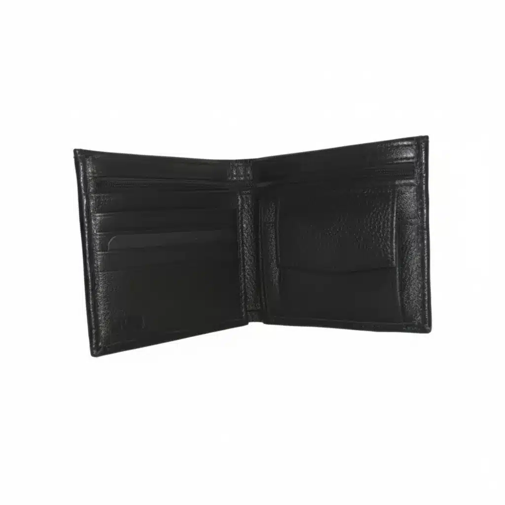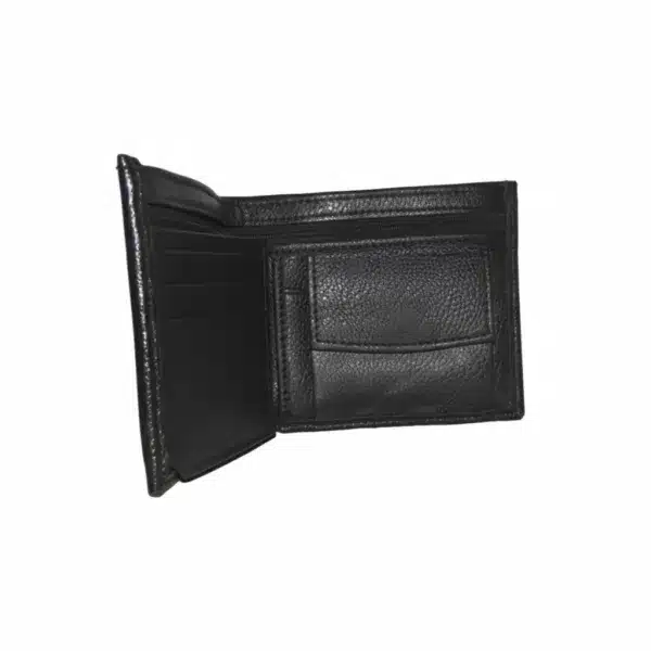 The black leather finish is versatile and elegant, making this wallet suitable for any setting—whether professional or casual. Its classic black tone adds a touch of sophistication to any outfit, making it a stylish yet functional accessory.